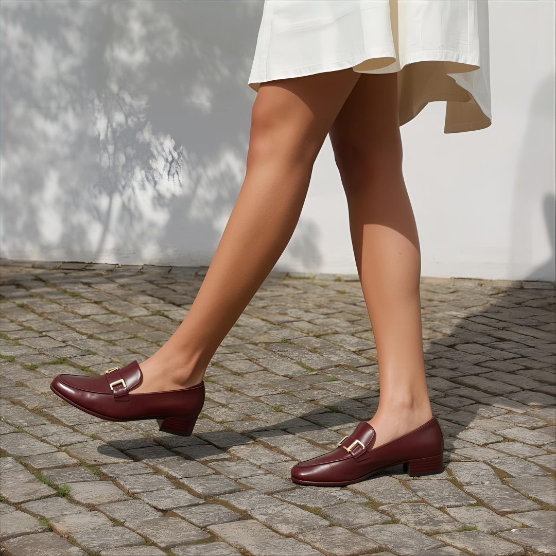 Wybierając bordowe buty, weź pod uwagę nie tylko ich kolor, ale także materiał i krój. Najbardziej klasyczne są skórzane lub zamszowe czółenka na stabilnym obcasie. Takie modele są bezpieczne i wygodne, a przy tym wyglądają elegancko. Bardziej wyraziste są szpilki lakierowane. Odbijają światło, podbijają głębię koloru, ale wymagają bardzo dobrze dobranej sukni, która nie będzie się z nimi gryzła stylistycznie. Delikatne sandałki na cienkim pasku sprawdzą się w stylizacjach boho lub romantycznych, o ile temperatura na to pozwala. Modele z odkrytymi palcami lub piętą prezentują się lekko, nawet przy mocnym kolorze. W przypadku sukni typu princessa lub fasonów z dużą ilością tiulu, najlepiej dodać buty proste, nie będą widoczne przez większość czasu, ale dobrze, by nie zaburzały proporcji sylwetki.