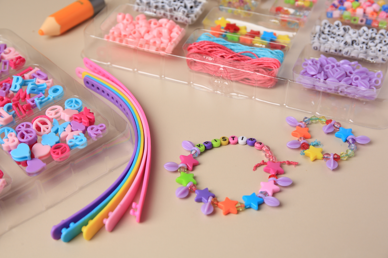 - Zestaw do robienia biżuterii – małe kolorowe koraliki, z których można stworzyć własne bransoletki i naszyjniki, to świetna zabawa dla każdej dziewczynki.