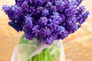 • Szafirki – niewielkie, delikatne kwiaty o intensywnie niebieskim kolorze, które świetnie komponują się z bardziej klasycznymi roślinami.